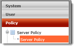 Login op de Webmail Gui en ga naar de module “Policy” en open [Server Policy] -> [Server Policy] in de tree.