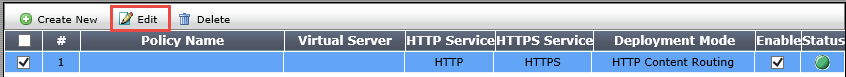 Selecteer de betreffende “Server Policy” en klik op (Edit)