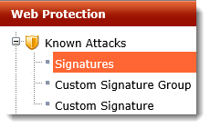 Ga nu naar de module “Web Protection” en open [Known Attacks] -> [Signatures] in de tree.
