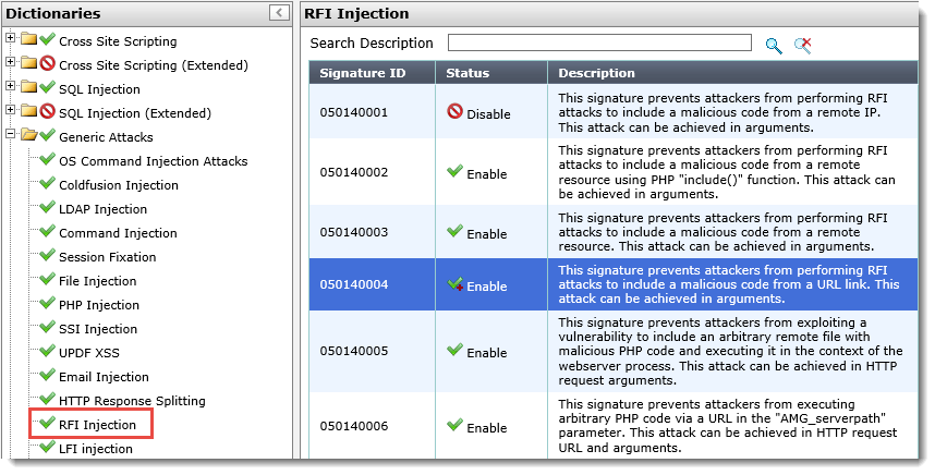 Ga nu wederom naar de Module “Web Protection” -> [Known Attacks] -> Signatures.